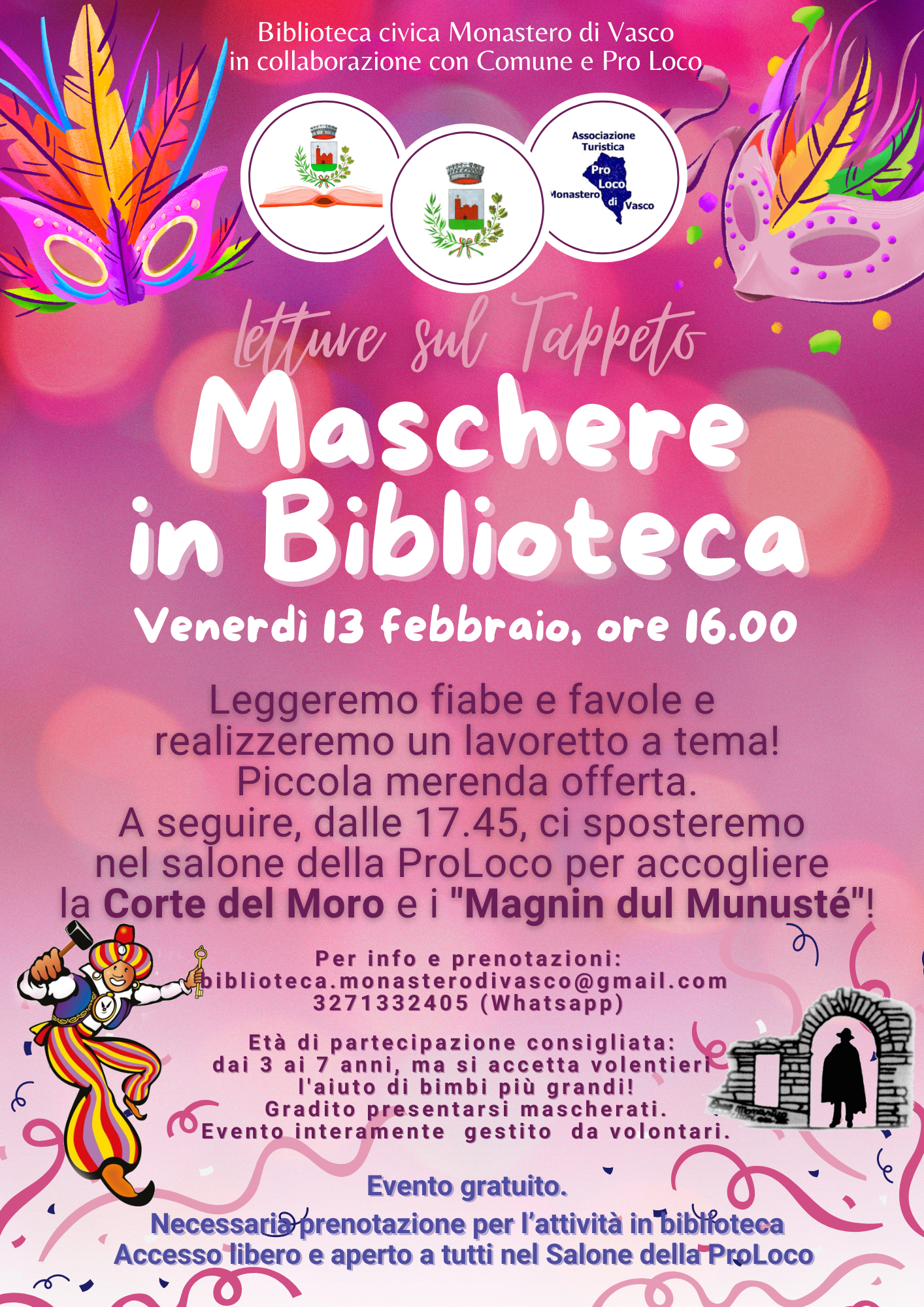 Biblioteca Civica di Monastero di Vasco - Evento "MASCHERE IN BIBLIOTECA"